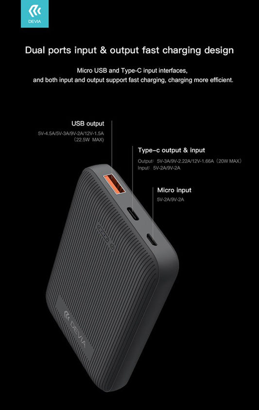 Devia - 10,000mAh 22.5W PD & QC3.0 LED Indicator Powerbank - Black